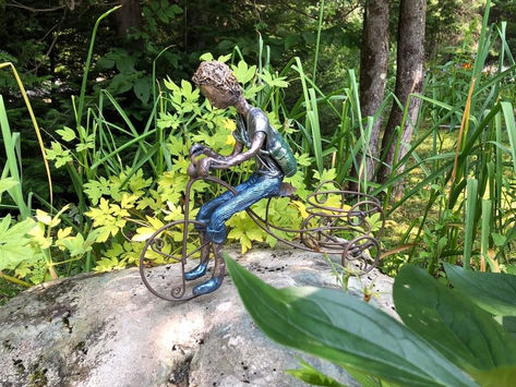 Passer du dessin et de la peinture à la sculpture a été un processus de 4 ans, commençant par des cours en sculpture à l’Université Bishops. « Passer d'œuvres d'art en 2 dimensions à des œuvres en 3 dimensions me permet d'utiliser davantage mes compétences analytiques et conceptuelles. Le défi de trouver comment construire des structures de support solides sur mes plus grandes pièces a alimenté ma passion. » La plupart des sculptures sont conçues pour résister aux hivers canadiens. « Ma période préférée de l'année est les mois d'hiver où, enfermée dans mon atelier, préparant de nouvelles sculptures à sortir dans les jardins de l'été prochain. »